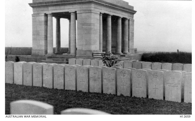 AWM H12659. Bailleul Cemetery and Shrine. Photograph donor Sir Herbert Ellison, photograph sourced from the Pictorial Collection of the Australian War Memorial