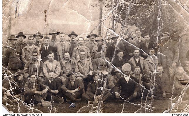 AWM P09645.001. Informal group of POWs held at Afyonkarahissar Camp, Turkey. Photographer unknown, photograph sourced from the Pictporial Collection of the Australian War Memorial