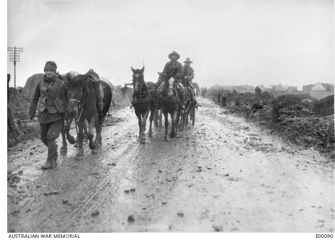 AWM E00090. DAC Ammunition packhorses, France, December 1916 . Photographer unknown, photograph sourced from the Pictorial Collection of the Australian War Memorial