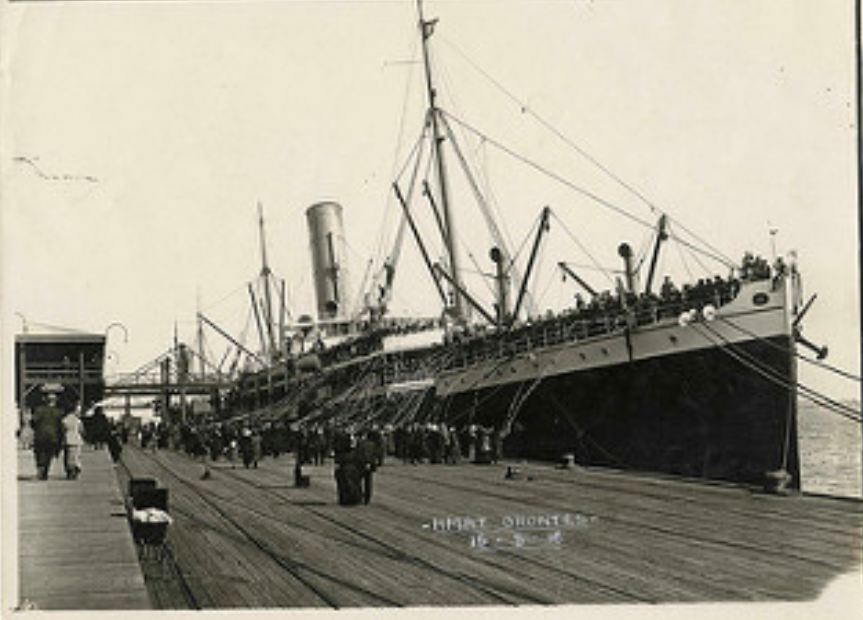 NMMA No 0002761. HMAT 'Orontes' 16.8.1918. Photographer Josiah Barnes, photograph source National Maritime Museum of Australia
