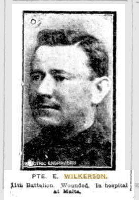 Wilkerson disembarked in Egypt and marched in to Mena Camp in December 1914. After almost 3 months of training, he marched in to Alexandria, joined the MEF and embarked per HMAT ’Suffolk’ for Lemnos 2.3.1915, in preparation for the Gallipoli landing. From Lemnos he embarked per HMS ‘London’ on 24.4.1915 and sailed for the Dardanelles. ‘B’ Coy were in the second wave of landings under heavy Turkish machine gun fire 25.4.1915. Wilkinson was wounded in the raid on Gaba Tepe 4.5.1915. He recorded his experiences in a letter to his mother that was reprinted in the local newspaper (Toodyay Herald  24.7.1915 p4) He was evacuated to Malta and admitted to Forrest Hospital 13.5.1915, transferred to the Convalescent Hospital at Tigne, then transferred per HT ‘Andina’ to the 2nd Stationary Hospital at Lemnos. Wilkerson was discharged to duty and returned to Gallipoli 10.7.1915. He became ill in the field and was admitted to the Casualty Clearing Station at Gallipoli 17.8.1915. He was evacuated to Mudros with influenza and gastritis 18.8.1915 and transferred to Heliopolis with enteritis 25.8.1915. Wilkerson was transferred to Egypt and was admitted to hospital at Heliopolis with diarrhoea 29.9.1915. He rejoined his Unit at Sampi Camp, Mudros 19.11.1915, following their evacuation from Gallipoli. Wilkerson sailed with his Battalion to Alexandria per HMT ‘Lake Michigan’. They engaged in a further period of training in preparation for the Western Front. He entrained to Alexandria, joined the BEF and embarked for France per HMT ’Corsican’ 29.3.1916. He disembarked at Marseilles 5.4.1916. Initially he was billeted at Fletre and then moved to Sailly 19.8.1916. In June the 11th Battalion moved to the Somme and fought around Pozieres in July 1916. (Wikipedia 11th Battalion). Wilkerson was wounded in action (2nd time) receiving a GSW to his foot (contusion) shell shock and was severely gassed 23.7.1916. He was evacuated to England per HS ‘Panama’ and admitted to the 3rd Western Hospital at Newport 29.7.1916 . On recovery, he was discharged and marched out to Perham Downs 17.10.1916. He was transferred to 70th Battalion at the 4th Command Depot at Wareham 14.5.1917. Wilkerson proceeded overseas to France was transferred to the 49th Battallion. 13.9.1917. He was taken on strength in the field 19.9.1917. Wilkerson was transferred back to England 9.2.1918 as an invalid. His medical report described him as suffering from chronic bronchitis and dilated heart resulting from gas exposure. He was listed for early return to Australia as an invalid and permanently unfit for service.