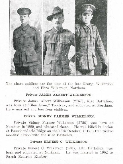 Notes Wilkinson was one of 15 children. His father was twice married and James was issue from the first marriage. He had two brothers who served with him, Ernest (SN 250) and Sidney (SN 2758) KIA. James and Ernest enlisted together and had consecutive Service Numbers.