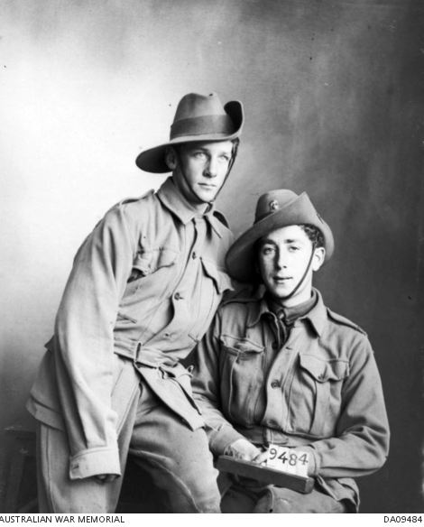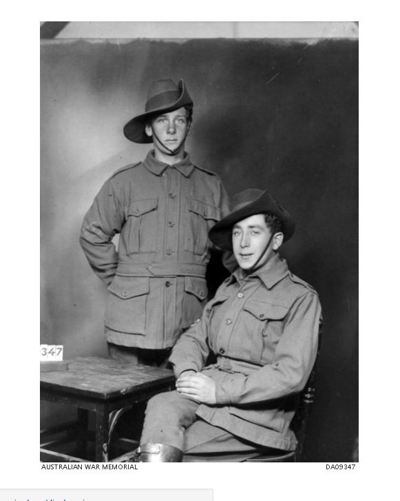 AWM DA09484. Sapper Gordon T.R. Wilson is one of the two soldiers 1915. Photographer Darge Studios Broadmeadows,Melbourne,Vic. Photograph sourced from the Pictorial Collection of the Australian War Memorial https://www.awm.gov.au/collection/DA09484/